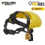Adaptador de plástico Steelpro, ultra liviano que permite adosar el visor de manera cómoda y ajustada para trabajos con protección de partículas, chispas, etc. Adaptador universal que permite el ajuste perfecto a cualquier tipo de casco, portavisor resortado de emsamble universal.