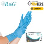 Guante Quirúrgico de Nitrilo R&G de examen de un solo uso, libre de polvo, ambidiestros, la superficie de los dedos son texturizados para darle mayor agarre tanto en húmedo como en seco, puño enrollado y no estéril.